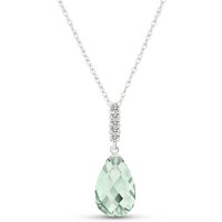 Green Amethyst & Diamond Pendant Necklace handcrafted in solid white gold. Single 5.3 ct genuine amethyst, five diamonds, total 0.08 ct. Briolette cut. The pendant is suspended from a white gold double link rope chain with spring clasp. Size: 7.9 x 24.4 mm (0.31 x 0.96 in). Material: 9ct White Gold. Total metal weight: 2.64 gr. 1 briolette cut green amethyst = 5.3 ct. 5 round cut diamonds (K colour, I3 clarity) = 0.08 ct total. Colour: Green. Stone cut: Briolette Cut. Anniversary: 6th Anniversary. Birthstone: February.