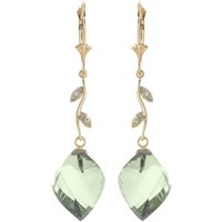 Green Amethyst & Diamond Dimensional Drop Earrings in 9ct Gold