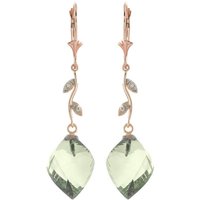 Green Amethyst & Diamond Dimensional Drop Earrings in 9ct Rose Gold
