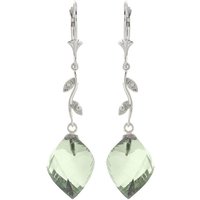 Green Amethyst & Diamond Dimensional Drop Earrings in 9ct White Gold