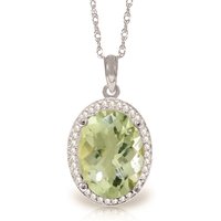 Green Amethyst & Diamond Pendant Necklace handcrafted in solid white gold. Single 4.9 ct genuine amethyst, 36 diamonds, total 0.18 ct. Oval cut. The pendant hangs from a white gold double link rope chain with spring clasp. Size: 13.2 x 22.6 mm (0.52 x 0.89 in). Material: 9ct White Gold. Total metal weight: 3.64 gr. 1 oval cut green amethyst (14 x 10 mm) = 4.9 ct. 36 round cut diamonds (K colour, I3 clarity) = 0.18 ct total. Colour: Green. Stone cut: Oval Cut. Anniversary: 6th Anniversary. Birthstone: February.