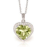 Green Amethyst & Diamond Pendant Necklace handcrafted in solid white gold. Single 3.25 ct genuine amethyst, 29 diamonds, total 0.14 ct. Heart shaped. The pendant is suspended from a white gold double link rope chain with spring clasp. Size: 13 x 18.5 mm (0.51 x 0.73 in). Material: 9ct White Gold. Total metal weight: 3.04 gr. 1 heart shaped green amethyst (10 x 10 mm) = 3.25 ct. 29 round cut diamonds (K colour, I3 clarity) = 0.14 ct total. Colour: Green. Stone cut: Heart Shaped. Anniversary: 6th Anniversary. Birthstone: February.