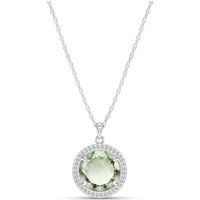 Green Amethyst & Diamond Octavia Halo Pendant Necklace in 9ct White Gold