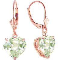 Green Amethyst Leverback Earrings handcrafted in rose gold plated 9ct gold. Two genuine amethysts, total 6.2 ct for both earrings combined. Heart shaped. Size: 10.2 x 28.7 mm (0.4 x 1.13 in). Material: 9ct Rose Gold. Total metal weight: 2.4 gr. 2 heart shaped green amethysts (10 x 10 mm) = 6.2 ct total for pair. Colour: Green. Stone cut: Heart Shaped. Anniversary: 6th Anniversary. Birthstone: February.