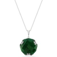 Green Sapphire Beatrix Round Chequer Pendant Necklace in 9ct White Gold