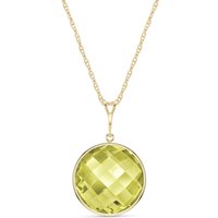 Lemon Quartz Pendant Necklace handcrafted in solid gold. Single 17 ct genuine quartz. Round cut. The pendant is suspended from a gold double link rope chain with spring clasp. Size: 18.5 x 27.9 mm (0.73 x 1.1 in). Material: 9ct Gold. Total metal weight: 2.24 gr. 1 round cut lemon quartz (18 x 18 mm) = 17 ct. Colour: Yellow. Stone cut: Round Cut.