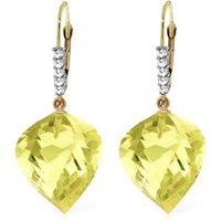 Lemon Quartz & Diamond Leverback Earrings handcrafted in solid gold. Two genuine quartz, total 21.5 ct, ten diamonds, total 0.15 ct for both earrings combined. Twisted briolette cut. Size: 12.7 x 32.5 mm (0.5 x 1.28 in). Material: 9ct Gold. Total metal weight: 4.7 gr. 2 twisted briolette cut lemon quartz (15 x 13 mm) = 21.5 ct total for pair. 10 round cut diamonds (K colour, I3 clarity) = 0.15 ct total for pair. Colour: Yellow. Stone cut: Twisted Briolette Cut.