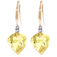 Lemon Quartz & Diamond Fish Hook Earrings handcrafted in rose gold plated 9ct gold. Two genuine quartz, total 21.5 ct, two diamonds, total 0.1 ct for both earrings combined. Twisted briolette cut. Size: 12.7 x 34.8 mm (0.5 x 1.37 in). Material: 9ct Rose Gold. Total metal weight: 4.4 gr. 2 twisted briolette cut lemon quartz (15 x 13 mm) = 21.5 ct total for pair. 2 round cut diamonds (K colour, I3 clarity) = 0.1 ct total for pair. Colour: Yellow. Stone cut: Twisted Briolette Cut.