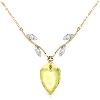 Lemon Quartz & Diamond Pendant Necklace handcrafted in solid gold. Single 9 ct genuine quartz, four diamonds, total 0.02 ct. Pointed briolette cut. The pendant hangs from a gold double link rope chain with spring clasp. Size: 17.8 mm (0.7 in). Material: 9ct Gold. Total metal weight: 3.14 gr. 1 pointed briolette cut lemon quartz (15 x 10 mm) = 9 ct. 4 round cut diamonds (K colour, I3 clarity) = 0.02 ct total. Colour: Yellow. Stone cut: Pointed Briolette Cut.