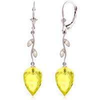 Lemon Quartz & Diamond Vine Drop Earrings in 9ct White Gold