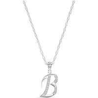 Letter B Diamond Classic Initial Pendant Necklace in 9ct White Gold