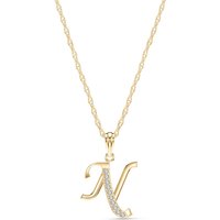 Letter N Diamond Classic Initial Pendant Necklace in 9ct Gold