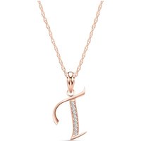 Letter T Diamond Classic Initial Pendant Necklace in 9ct Rose Gold
