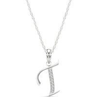 Letter T Diamond Classic Initial Pendant Necklace in 9ct White Gold