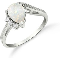 Opal & Diamond Ring handcrafted in solid sterling silver. Single 0.77 ct genuine opal, three diamonds, total 0.02 ct. Pear cut. Available from sizes H to Z including half sizes. Size: 10.9 mm (0.43 in). Material: Sterling Silver. Total metal weight: 2.8 gr. 1 pear cut opal (9 x 6 mm) = 0.77 ct. 3 round cut diamonds (K colour, SI2 clarity) = 0.02 ct total. Colour: White. Stone cut: Pear Cut. Anniversary: 14th Anniversary. Birthstone: October.