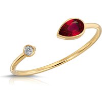 Ruby & Diamond Ring handcrafted in 9ct Gold. Single 0.3 ct genuine ruby, single 0.03 ct diamond. Pear cut. Available from sizes H to Z including half sizes. Size: 1 x 18.8 mm (0.04 x 0.74 in). Material: 9ct Gold. Total metal weight: 0.5 gr. 1 pear cut ruby (3 x 5 mm) = 0.3 ct. 1 round brilliant cut diamond (H colour, I3 clarity) = 0.03 ct. Colour: Red. Stone cut: Pear cut. Anniversary: 15th Anniversary, 40th Anniversary. Birthstone: July.