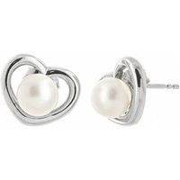 Pearl Cassandra Heart Framed Stud Earrings in 9ct White Gold