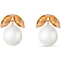 Stud Earrings handcrafted in rose gold plated 9ct gold. Six gemstones, total 4.4 ct for both earrings combined. Post with friction back to fasten. Size: 7.6 x 10.7 mm (0.3 x 0.42 in). Material: 9ct Rose Gold. Total metal weight: 1.3 gr. 2 freshwater pearls (7 x 7 mm) = 4 ct total for pair. 4 marquise cut citrines (4 x 2 mm) = 0.4 ct total for pair. Colour: White. Anniversary: 3rd Anniversary, 30th Anniversary. Birthstone: June.