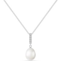 Pearl & Diamond Chelsea Embellished Drop Pendant Necklace in 9ct White Gold