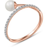Pearl & Diamond Ring handcrafted in solid 18ct rose gold. Single 2 ct genuine pearl, 21 diamonds, total 0.3 ct. Available from sizes H to Z including half sizes. Size: 15.5 mm (0.61 in). Material: 18ct Rose Gold. Total metal weight: 3.1 gr. 1 freshwater pearl (7 x 7 mm) = 2 ct. 21 round cut diamonds (K colour, I3 clarity) = 0.3 ct total. Colour: White. Anniversary: 3rd Anniversary, 30th Anniversary. Birthstone: June.