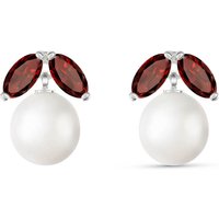 Pearl & Garnet Stud Earrings handcrafted in solid white gold. Six gemstones, total 4.4 ct for both earrings combined. Post with friction back to fasten. Size: 7.6 x 10.7 mm (0.3 x 0.42 in). Material: 9ct White Gold. Total metal weight: 1.3 gr. 2 freshwater pearls (7 x 7 mm) = 4 ct total for pair. 4 marquise cut garnets (4 x 2 mm) = 0.4 ct total for pair. Colour: White. Anniversary: 3rd Anniversary, 30th Anniversary. Birthstone: June.