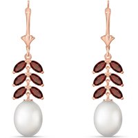 Pearl & Garnet Leverback Earrings handcrafted in rose gold plated 9ct gold. 14 gemstones, total 9.2 ct for both earrings combined. Size: 7.9 x 39.9 mm (0.31 x 1.57 in). Material: 9ct Rose Gold. Total metal weight: 3.5 gr. 2 freshwater pearls (10 x 8 mm) = 8 ct total for pair. 12 marquise cut garnets (4 x 2 mm) = 1.2 ct total for pair. Colour: White. Anniversary: 3rd Anniversary, 30th Anniversary. Birthstone: June.