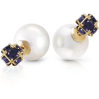 Pearl & Sapphire Stud Earrings handcrafted in solid gold. 14 gemstones, total 71.1 ct for both earrings combined. Post with friction back to fasten. Size: 9.7 x 22.4 mm (0.38 x 0.88 in). Material: 9ct Gold. Total metal weight: 1.9 gr. 2 pearls (16 x 16 mm) = 62.5 ct total for pair. 12 round cut sapphires (5 x 5 mm) = 8.6 ct total for pair. Colour: White. Anniversary: 3rd Anniversary, 30th Anniversary. Birthstone: June.
