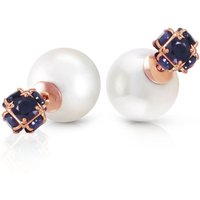 Pearl & Sapphire Stud Earrings handcrafted in rose gold plated 9ct gold. 14 gemstones, total 71.1 ct for both earrings combined. Post with friction back to fasten. Size: 9.7 x 22.4 mm (0.38 x 0.88 in). Material: 9ct Rose Gold. Total metal weight: 1.9 gr. 2 pearls (16 x 16 mm) = 62.5 ct total for pair. 12 round cut sapphires (5 x 5 mm) = 8.6 ct total for pair. Colour: White. Anniversary: 3rd Anniversary, 30th Anniversary. Birthstone: June.