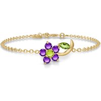 Peridot & Amethyst Elora Charming Flower Bracelet in 9ct Gold