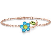 Peridot & Blue Topaz Elora Charming Flower Bracelet in 9ct Rose Gold