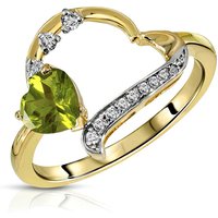 Peridot & Diamond Ring handcrafted in 9ct Gold. Single 0.75 ct genuine peridot, twelve diamonds, total 0.2 ct. Heart shaped. Available from sizes H to Z including half sizes. Size: 13.5 x 23.6 mm (0.53 x 0.93 in). Material: 9ct Gold. Total metal weight: 2.4 gr. 1 heart shaped peridot (6 x 6 mm) = 0.75 ct. 12 round cut diamonds (K colour, I3 clarity) = 0.2 ct total. Colour: Green. Stone cut: Heart shaped. Anniversary: 16th Anniversary. Birthstone: August.