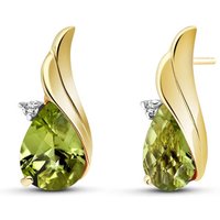 Peridot & Diamond Stud Earrings handcrafted in solid gold. Two genuine peridots, total 4.2 ct, two diamonds, total 0.06 ct for both earrings combined. Pear cut. Post with friction back to fasten. Size: 7.9 x 17.8 mm (0.31 x 0.7 in). Material: 9ct Gold. Total metal weight: 3.9 gr. 2 pear cut peridots = 4.2 ct total for pair. 2 round cut diamonds (K colour, I3 clarity) = 0.06 ct total for pair. Colour: Green. Stone cut: Pear Cut. Anniversary: 16th Anniversary. Birthstone: August.