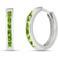 Peridot Hoop Huggie Earrings handcrafted in solid white gold. 14 genuine peridots, total 1.4 ct for both earrings combined. Princess cut. Size: 3.3 x 19.1 mm (0.13 x 0.75 in). Material: 9ct White Gold. Total metal weight: 2.6 gr. 14 princess cut peridots (2.5 x 2.5 mm) = 1.4 ct total for pair. Colour: Green. Stone cut: Princess Cut. Anniversary: 16th Anniversary. Birthstone: August.