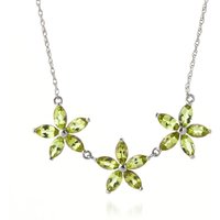 Peridot Petunia Floral Pendant Necklace in 9ct White Gold