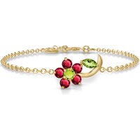 Peridot & Ruby Elora Charming Flower Bracelet in 9ct Gold