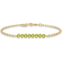 Peridot Bracelet handcrafted in solid gold. Eight genuine peridots, total 1.55 ct. Round cut. Fastened by gold lobster clasp. One size – length adjustable from 6.5″ to 7.5″ (165 to 190 mm). Size: 5.3 mm (0.21 in). Material: 9ct Gold. Total metal weight: 1.5 gr. 8 round cut peridots (3 x 3 mm) = 1.55 ct total. Colour: Green. Stone cut: Round Cut. Anniversary: 16th Anniversary. Birthstone: August.