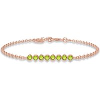 Bracelet handcrafted in rose gold plated 9ct gold. Eight genuine peridots, total 1.55 ct. Round cut. Fastened by rose gold lobster clasp. One size – length adjustable from 6.5″ to 7.5″ (165 to 190 mm). Size: 5.3 mm (0.21 in). Material: 9ct Rose Gold. Total metal weight: 1.5 gr. 8 round cut peridots (3 x 3 mm) = 1.55 ct total. Colour: Green. Stone cut: Round Cut. Anniversary: 16th Anniversary. Birthstone: August.