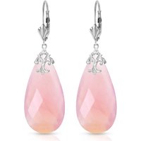 Pink Chalcedony Leverback Earrings handcrafted in solid white gold. Two genuine chalcedony, total 38 ct for both earrings combined. Briolette cut. Size: 10.2 x 51.3 mm (0.4 x 2.02 in). Material: 9ct White Gold. Total metal weight: 7.4 gr. 2 briolette cut pink chalcedony (31 x 16 mm) = 38 ct total for pair. Colour: Pink. Stone cut: Briolette Cut.