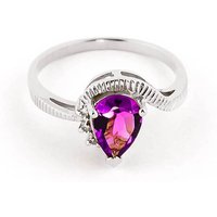 Pink Topaz & Diamond Ring handcrafted in solid sterling silver. Single 1.5 ct genuine topaz, three diamonds, total 0.02 ct. Pear cut. Available from sizes H to Z including half sizes. Size: 10.9 mm (0.43 in). Material: Sterling Silver. Total metal weight: 2.8 gr. 1 pear cut pink topaz (9 x 6 mm) = 1.5 ct. 3 round cut diamonds (K colour, SI2 clarity) = 0.02 ct total. Colour: Pink. Stone cut: Pear Cut. Anniversary: 4th Anniversary. Birthstone: November.