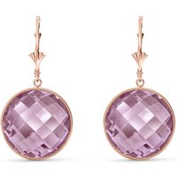 Leverback Earrings handcrafted in rose gold plated 9ct gold. Two genuine quartz, total 34 ct for both earrings combined. Round cut. Size: 18.5 x 36.1 mm (0.73 x 1.42 in). Material: 9ct Rose Gold. Total metal weight: 1.6 gr. 2 round cut rose quartz (18 x 18 mm) = 34 ct total for pair. Colour: Pink. Stone cut: Round Cut.