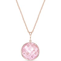 Pendant Necklace handcrafted in rose gold plated 9ct gold. Single 17 ct genuine quartz. Round cut. The pendant hangs from a rose gold double link rope chain with spring clasp. Size: 18.5 x 27.9 mm (0.73 x 1.1 in). Material: 9ct Rose Gold. Total metal weight: 3.14 gr. 1 round cut rose quartz (18 x 18 mm) = 17 ct. Colour: Pink. Stone cut: Round Cut.