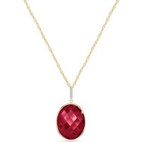 Ruby & Diamond Pendant Necklace handcrafted in solid gold. Single 19.5 ct genuine ruby, five diamonds, total 0.08 ct. Oval cut. The pendant hangs from a gold double link rope chain with spring clasp. Size: 19.8 x 37.8 mm (0.78 x 1.49 in). Material: 9ct Gold. Total metal weight: 5.44 gr. 1 oval cut ruby (VS1 clarity) = 19.5 ct. 5 round cut diamonds (G colour, SI2 clarity) = 0.08 ct total. Colour: Red. Stone cut: Oval Cut. Anniversary: 15th Anniversary, 40th Anniversary. Birthstone: July.