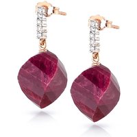 Ruby & Diamond Stud Earrings handcrafted in rose gold plated 9ct gold. Two genuine rubies, total 30.5 ct, ten diamonds, total 0.15 ct for both earrings combined. Twisted briolette cut. Post with friction back to fasten. Size: 12.7 x 27.2 mm (0.5 x 1.07 in). Material: 9ct Rose Gold. Total metal weight: 6.0 gr. 2 twisted briolette cut rubies (15 x 13 mm, VS1 clarity) = 30.5 ct total for pair. 10 round cut diamonds (K colour, I3 clarity) = 0.15 ct total for pair. Colour: Red. Stone cut: Twisted Briolette Cut. Anniversary: 15th Anniversary, 40th Anniversary. Birthstone: July.
