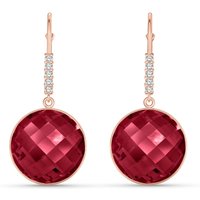 Ruby & Diamond Leverback Earrings handcrafted in rose gold plated 9ct gold. Two genuine rubies, total 46 ct, ten diamonds, total 0.15 ct for both earrings combined. Round cut. Size: 18.5 x 36.6 mm (0.73 x 1.44 in). Material: 9ct Rose Gold. Total metal weight: 9.9 gr. 2 round cut rubies (VS1 clarity) = 46 ct total for pair. 10 round cut diamonds (G colour, SI2 clarity) = 0.15 ct total for pair. Colour: Red. Stone cut: Round Cut. Anniversary: 15th Anniversary, 40th Anniversary. Birthstone: July.
