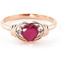 Ruby & Diamond Engagement Ring handcrafted in solid 18ct rose gold. Single 1 ct genuine ruby, two diamonds, total 0.01 ct. Heart shaped. Available from sizes H to Z including half sizes. Size: 7.4 mm (0.29 in). Material: 18ct Rose Gold. Total metal weight: 2.8 gr. 1 heart shaped ruby (6 x 6 mm, VS1 clarity) = 1 ct. 2 round cut diamonds (K colour, I3 clarity) = 0.01 ct total. Colour: Red. Stone cut: Heart Shaped. Anniversary: 15th Anniversary, 40th Anniversary. Birthstone: July.