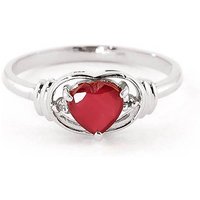 Ruby & Diamond Engagement Ring handcrafted in solid 18ct white gold. Single 1 ct genuine ruby, two diamonds, total 0.01 ct. Heart shaped. Available from sizes H to Z including half sizes. Size: 7.4 mm (0.29 in). Material: 18ct White Gold. Total metal weight: 2.7 gr. 1 heart shaped ruby (6 x 6 mm, VS1 clarity) = 1 ct. 2 round cut diamonds (K colour, I3 clarity) = 0.01 ct total. Colour: Red. Stone cut: Heart Shaped. Anniversary: 15th Anniversary, 40th Anniversary. Birthstone: July.