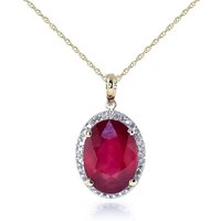 Ruby & Diamond Pendant Necklace handcrafted in solid gold. Single 7.75 ct genuine ruby, 36 diamonds, total 0.18 ct. Oval cut. The pendant hangs from a gold double link rope chain with spring clasp. Size: 13.2 x 22.6 mm (0.52 x 0.89 in). Material: 9ct Gold. Total metal weight: 4.04 gr. 1 oval cut ruby (14 x 10 mm, VS1 clarity) = 7.75 ct. 36 round cut diamonds (K colour, I3 clarity) = 0.18 ct total. Colour: Red. Stone cut: Oval Cut. Anniversary: 15th Anniversary, 40th Anniversary. Birthstone: July.